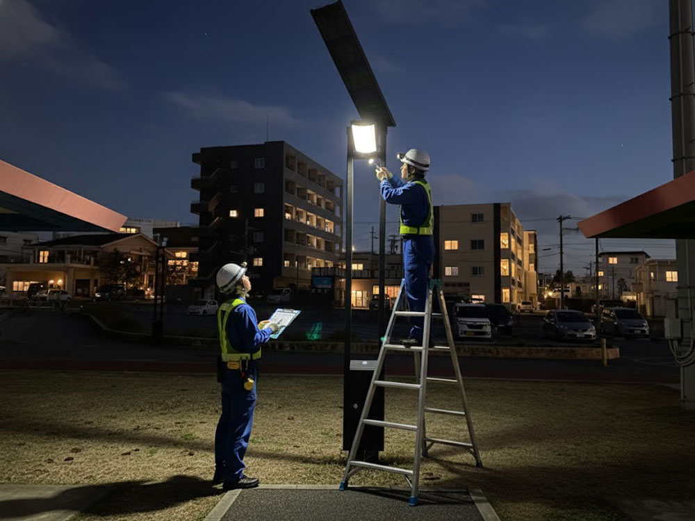 公園の計画的な維持管理の取り組みを支援するために長寿命化計画に基づきソーラー照明灯の点検・メンテナンス・保持に取り組んでいます。